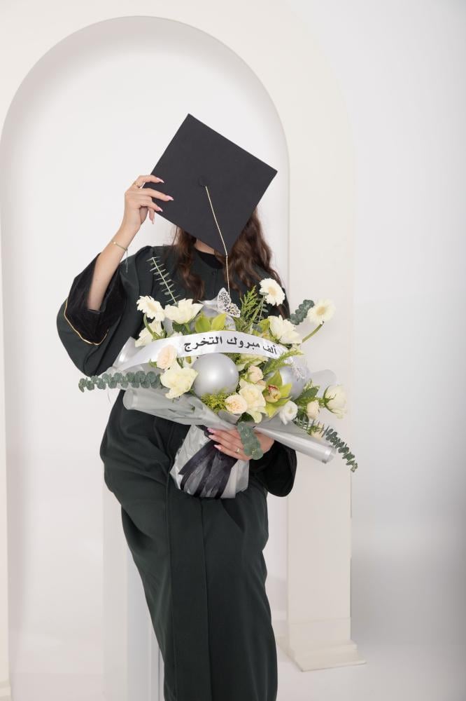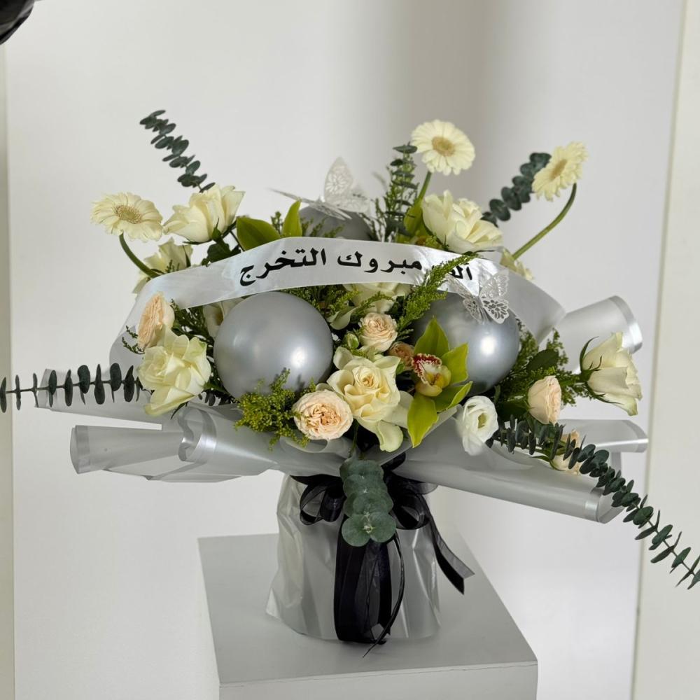 تتميز هذه الباقة بجمالها الأخاذ ورائحتها العطرة التي تدوم طويلاً، مما يضفي بهجة وسعادة على قلب الخريج. إنها ليست مجرد باقة ورد، بل هي تعبير صادق عن التقدير والاعتزاز بالإنجاز. 🎁 اجعل تخرج أحبائك ذكرى لا تُنسى مع هذه الهدية القيّمة.