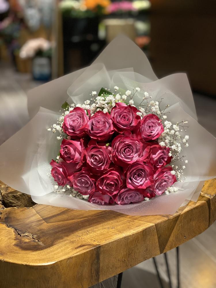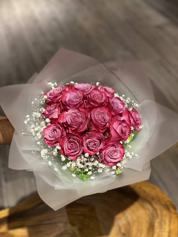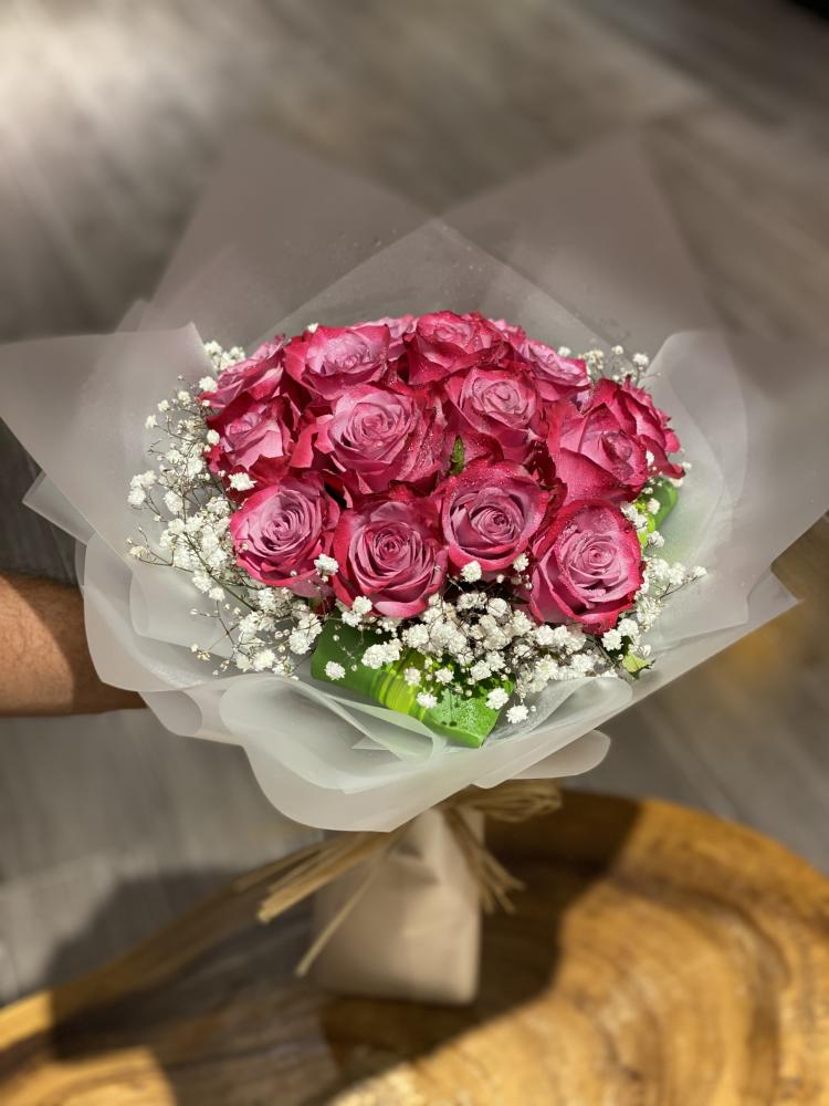 دلّل أحبائك بباقة إيلاف الساحرة، تحفة فنية تجمع بين جمال الورد الجوري الموف دبل كلر الآسر وزهرة الجيبسوفيلا الرقيقة. بتغليفها الشفاف الأنيق، تُبرز هذه الباقة سحر الورد الطبيعي وتضفي لمسة من الرومانسية والبهجة على أي مناسبة.