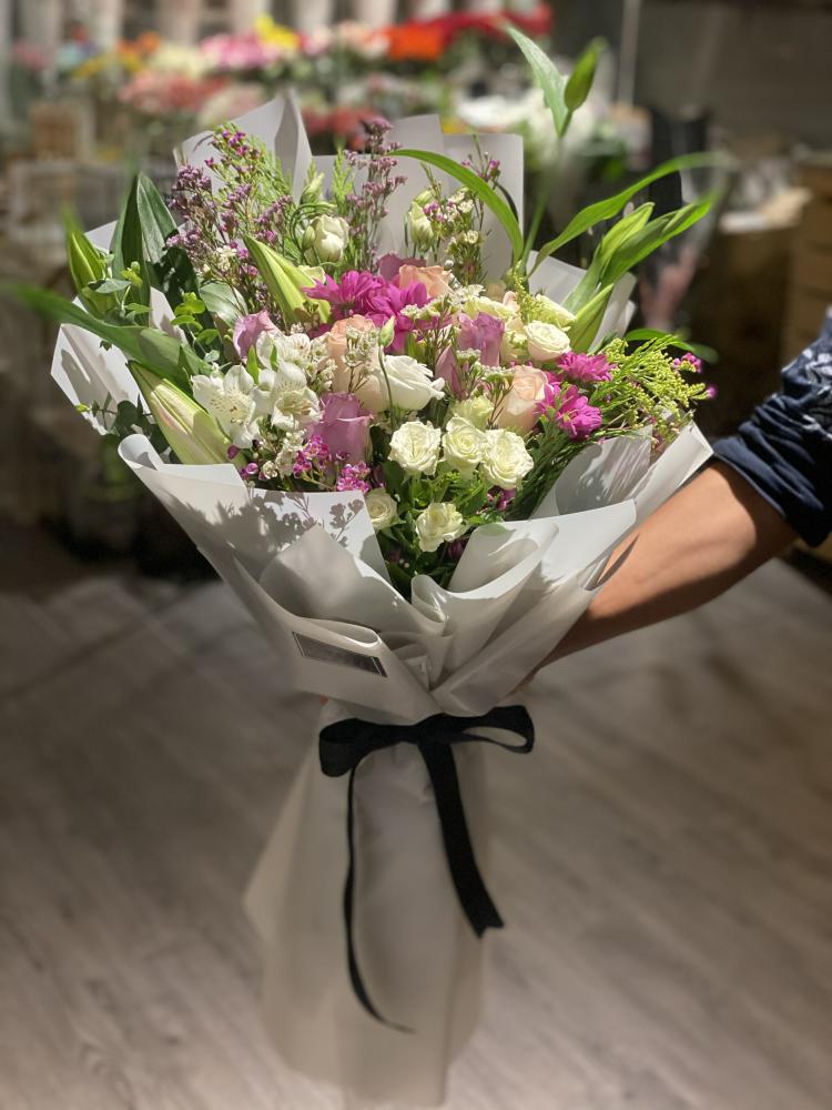 دلّل أحبائك بباقة عهود الرائعة من ورود فريدة. هذه الباقة الفاخرة تجمع بين جمال الورود الطبيعية المتنوعة وأناقة اللافندر العطري، لتخلق تحفة فنية آسرة للحواس. بتغليفها الأسود الأنيق، تُضفي باقة عهود لمسة من الرقي والجمال على أي مناسبة.