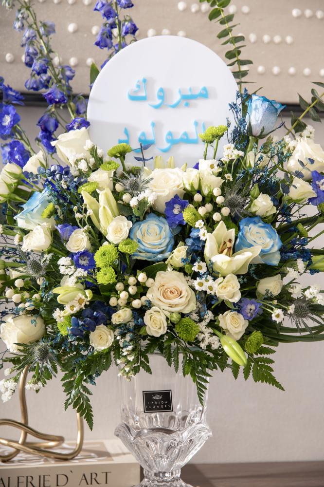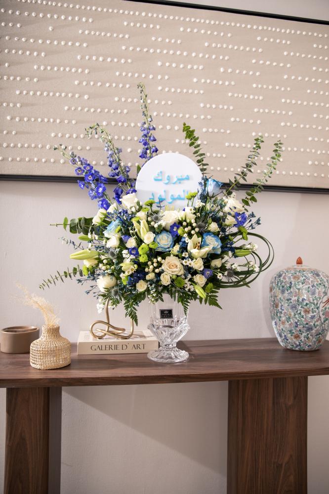 احتفلوا بقدوم المولود الجديد بأجمل طريقة مع فازة "مبروك المولود" الفاخرة من ورود فريدة. هذه الفازة الزجاجية الأنيقة تتضمن تنسيقًا رائعًا من الورد الطبيعي بألوان الأزرق ودرجاته الساحرة، مما يضفي لمسة من البهجة والجمال على أي مكان.
