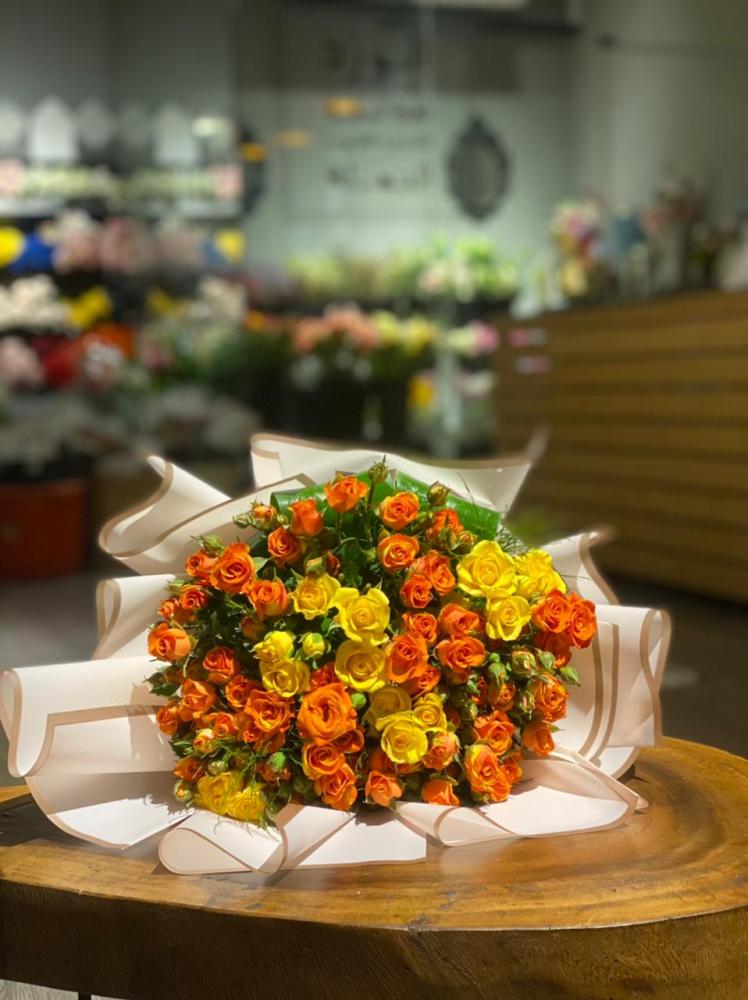 The Ranem bouquet is a masterpiece that combines the beauty of baby roses with cheerful colors. This enchanting blend of yellow and orange is specially designed to attract attention and add a touch of joy and brightness to any space.