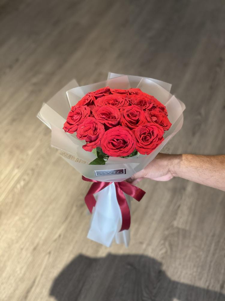 The Reem Bouquet, the embodiment of delicacy and beauty. This enchanting bouquet consists of the finest natural red roses, carefully selected to add a touch of love and romance to your loved one's day. It features elegant, transparent packaging that highlights the beauty of the natural roses while preserving their freshness.